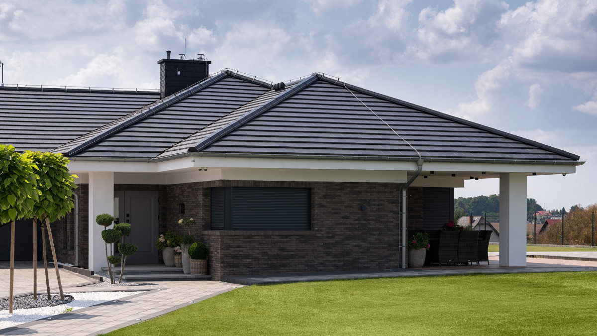 Odpowiedzią są dachówki o prostych, geometrycznych kształtach jak cementowa KAPSTADT dostępne w szerokiej palecie kolorystycznej – od klasycznych czerwieni po nowoczesne antracyty i czernie. Dzięki temu ten sam model dachówki może wyglądać tradycyjnie w połączeniu z ciepłymi odcieniami i ceglaną elewacją, lub awangardowo w matowej czerni, w zestawieniu z białą, betonową elewacją.
