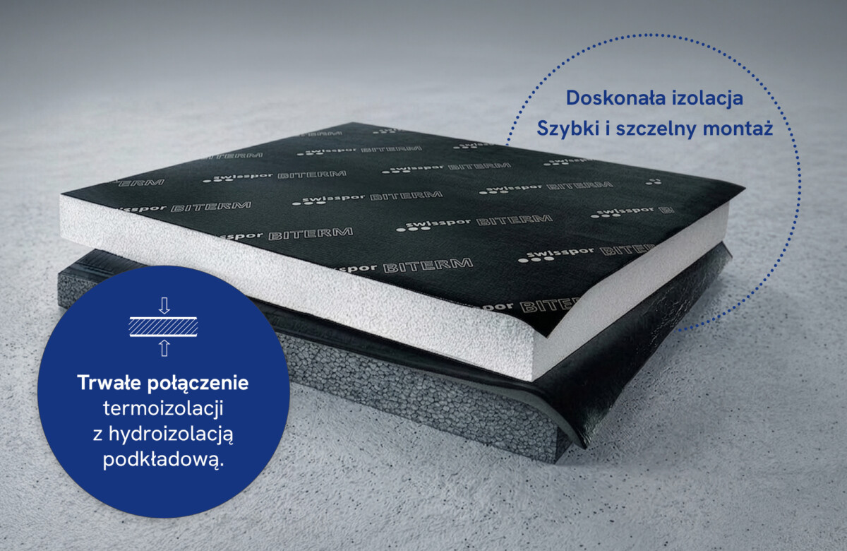 Budowa dachu płaskiego to proces wymagający precyzji i koordynacji wielu etapów. Tradycyjnie montaż polega na oddzielnym układaniu termoizolacji i warstw hydroizolacyjnych. Co by się jednak stało, gdyby te dwa kluczowe procesy połączyć w jeden? Odpowiedzią jest swissporBITERM – zaawansowana technologicznie „styropapa”, która rewolucjonizuje podejście do izolacji dachów.