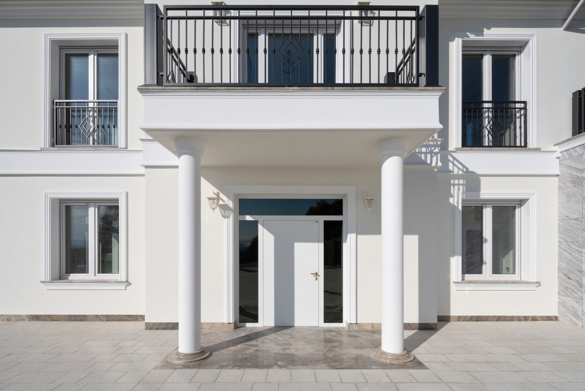 Klasyczna architektura wymaga bardziej stonowanych rozwiązań. Tu warto sięgnąć po subtelne doświetla boczne z mlecznym szkłem, które zapewniają prywatność, nie zakłócając przy tym harmonii fasady. Takie przeszklenia dodają lekkości, nie dominując wizualnie.