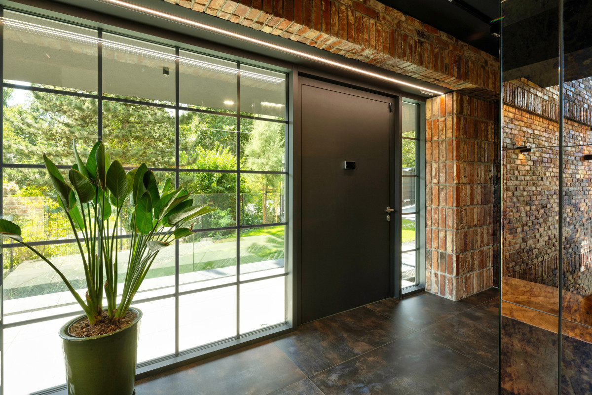 Naturalne światło w strefie wejściowej zapewnia estetykę i komfort. Przeszklenia optycznie powiększają przestrzeń, dodając jej lekkości i nowoczesnego charakteru. Ma to znaczenie szczególnie w wąskich, niewielkich miejscach, gdzie brakuje innych źródeł światła dziennego. Dzięki możliwości wyboru układu przeszkleń, drzwi można idealnie dopasować do architektury budynku oraz indywidualnych preferencji domowników.