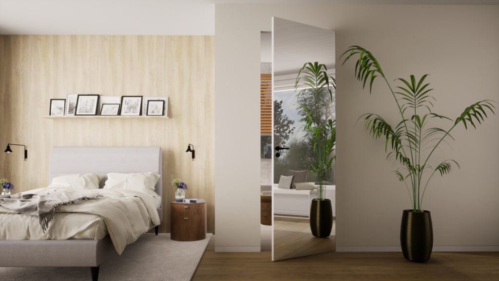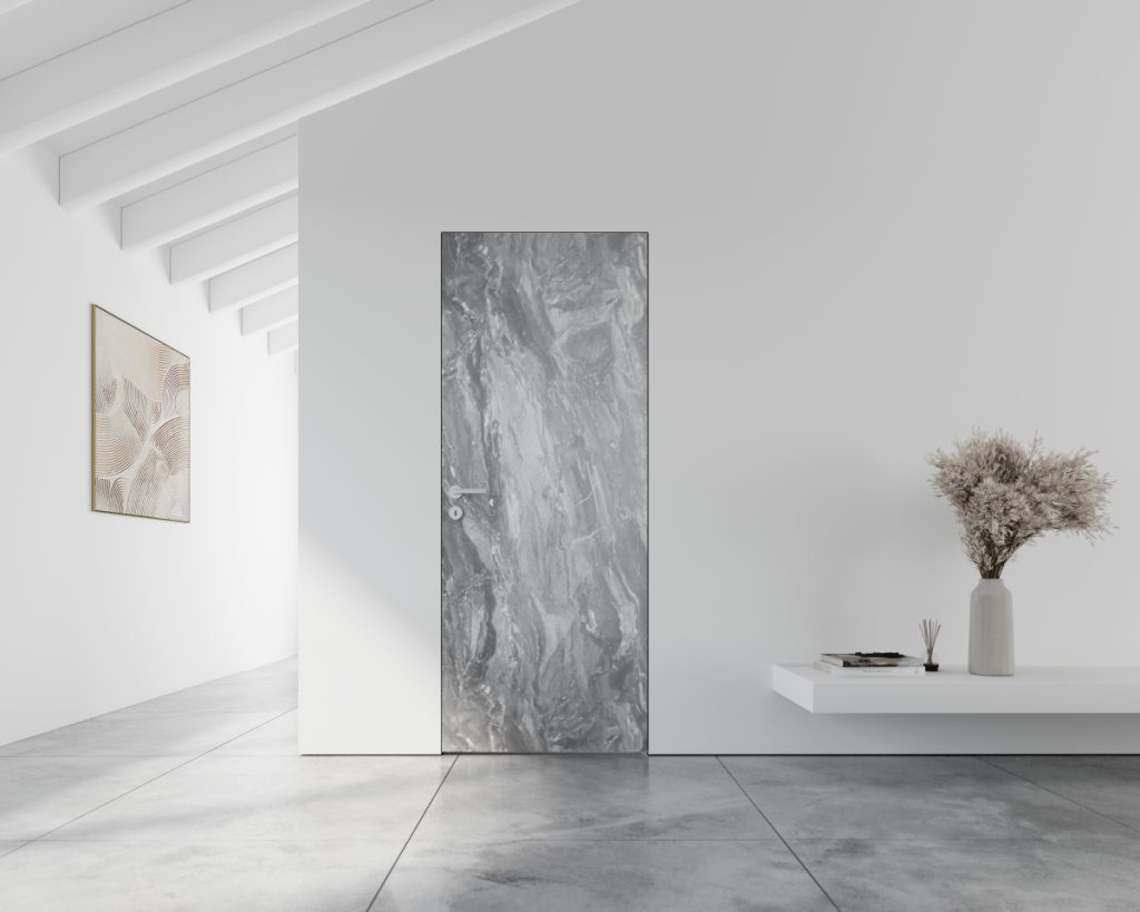 i dyskrecja, z drugiej wyraźna szczelina tworząca głębię – jak w ramie obrazu. Minimalistyczny design i wszechstronność sprawiają, że te drzwi stają się centralnym punktem każdego wnętrza.