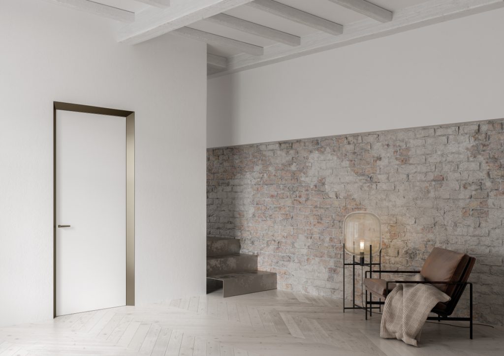 Eclisse40 – ościeżnice do drzwi rozwieranych nachylone pod kątem 40 stopni to nie tylko element konstrukcyjny, ale prawdziwe dzieło sztuki. Malowane aluminium tworzy wytrzymałą ramę, która wydobywa piękno i elegancję drzwi zlicowanych ze ścianą. Z jednej strony elegancja